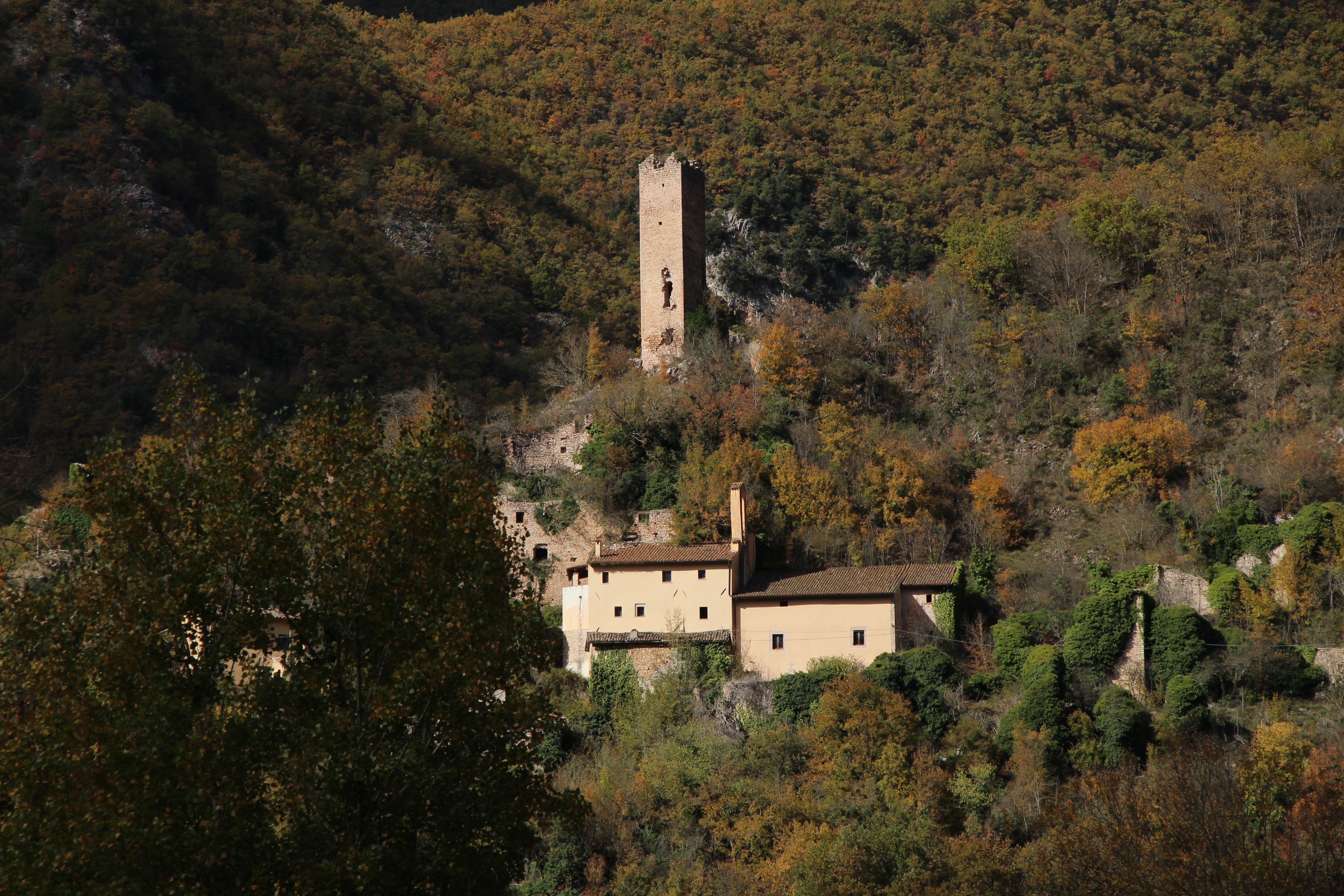 Pochi chilometri più avanti si giunge a Sant’Andrea, ultima posta prima del castello di confine tra Umbria e Lazio, tra Perugia e Rieti, tra Norcia e Accumoli: Pescia, posta a 1100 metri di altitudine sulle rive dell’omonimo torrente. Un luogo fiabesco, silenzioso, emotivamente carico, all’estrema propaggine del Piano di Santa Scolastica. Un tempo punto chiave del percorso alto-medievale per la via Salaria, accoglie il visitatore abbarbicata allo scoglio roccioso che conserva ancora qualche rudere dell’antica rocca, alle falde del Monte Pizzuto (1900 metri sul livello del mare) che merita senza dubbio un’escursione di trekking di almeno una giornata intera.